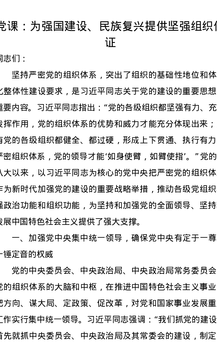 党课讲稿:为强国建设、民族复兴提供坚强组织保证