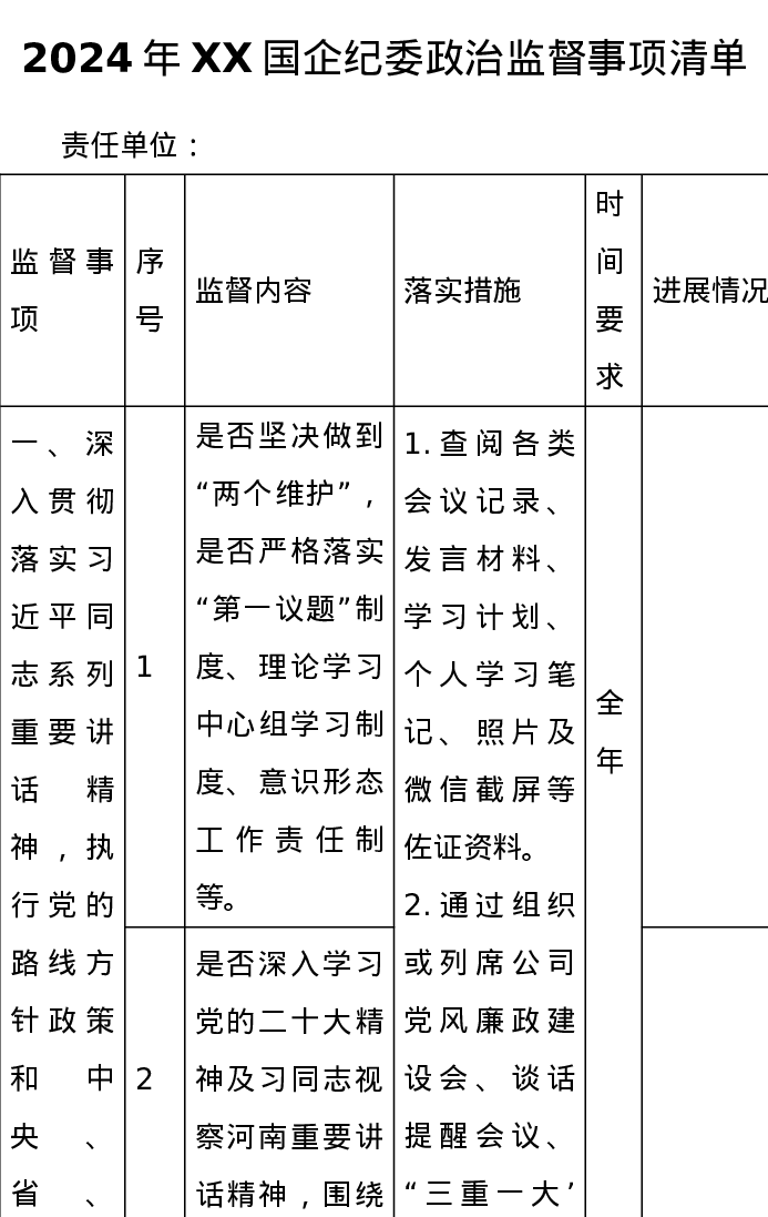 国企纪委2024年三项监督清单
