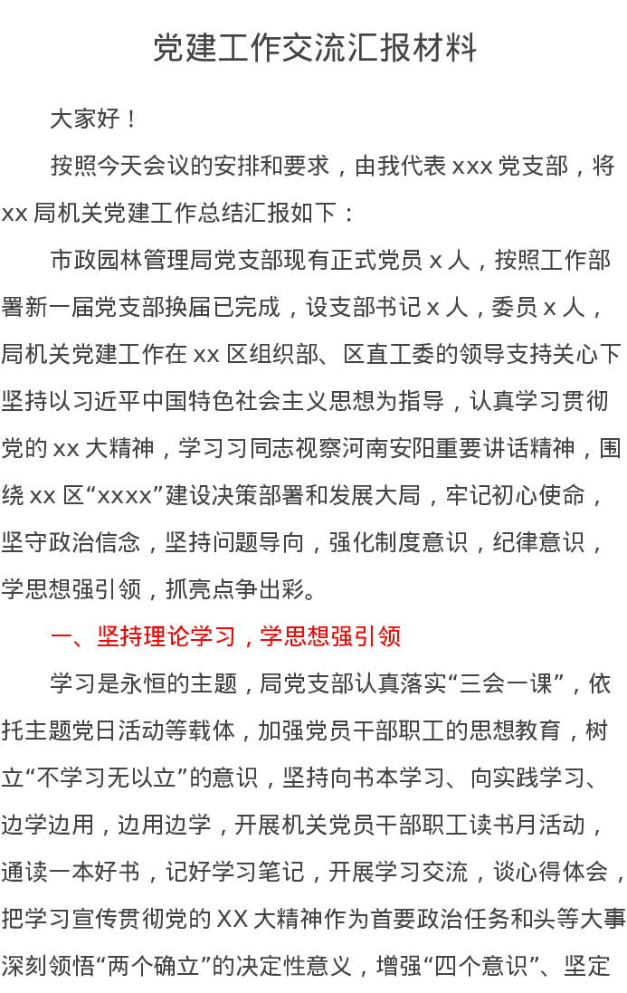 党建工作交流汇报材料
