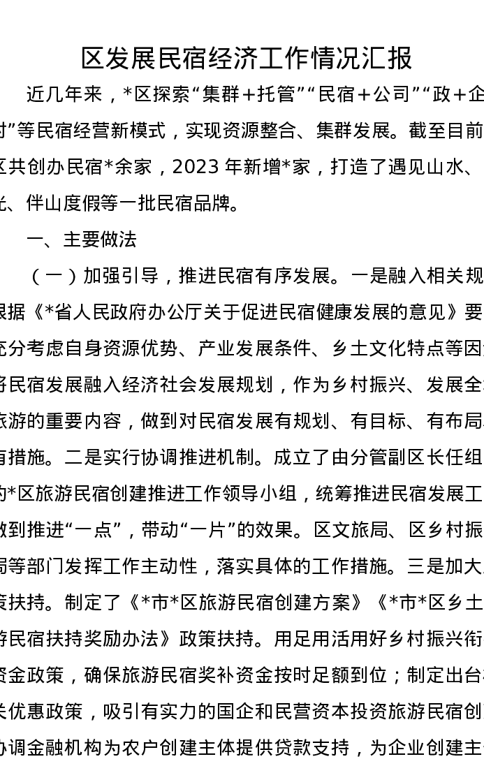 区发展民宿经济工作情况汇报