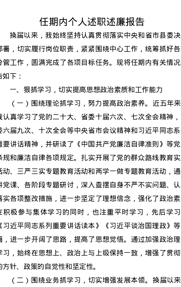 任期内个人述职述廉报告