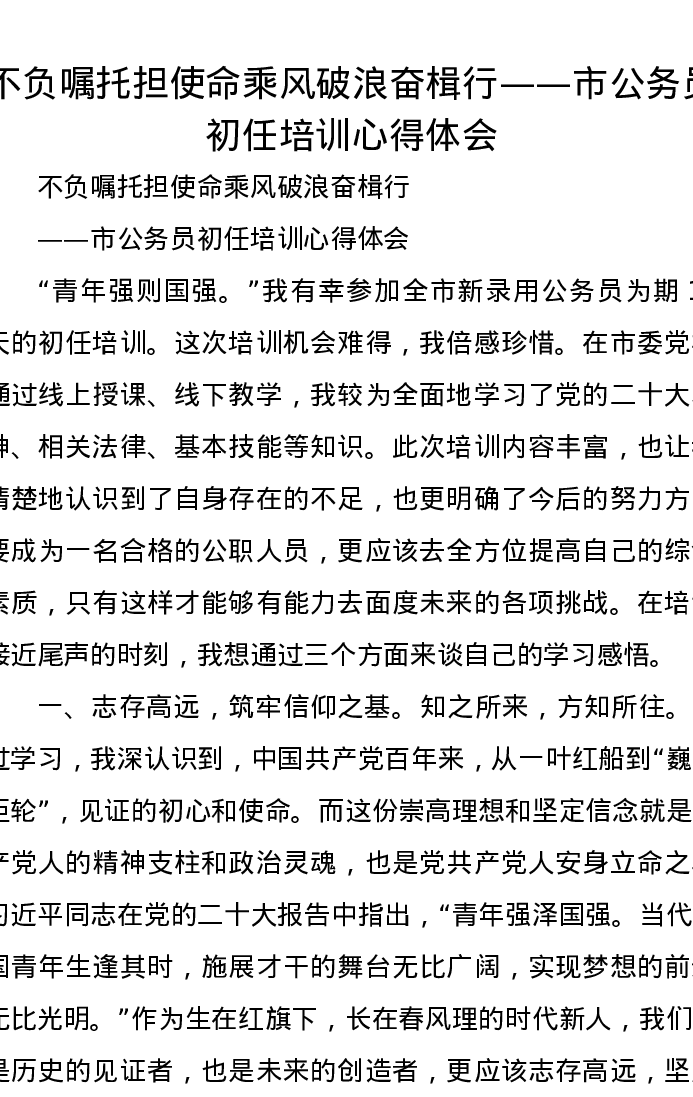 不负嘱托担使命乘风破浪奋楫行——市公务员初任培训心得体会