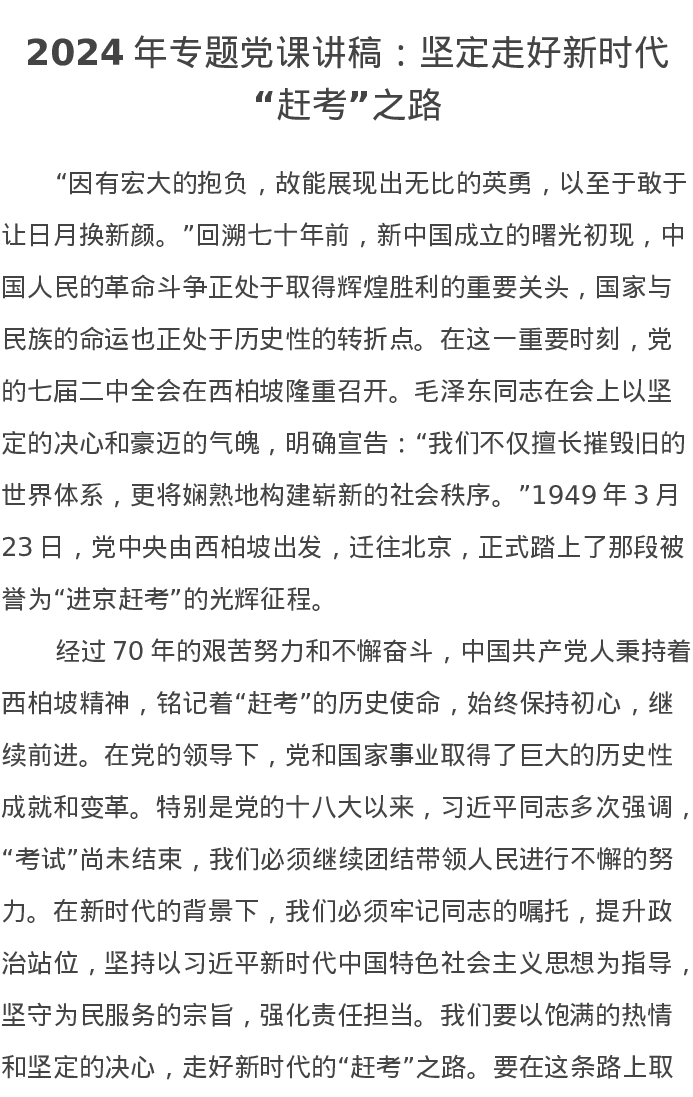 2024年专题党课讲稿:坚定走好新时代“赶考”之路