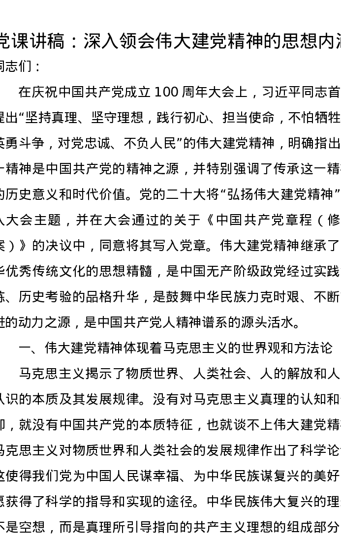 党课讲稿:深入领会伟大建党精神的思想内涵