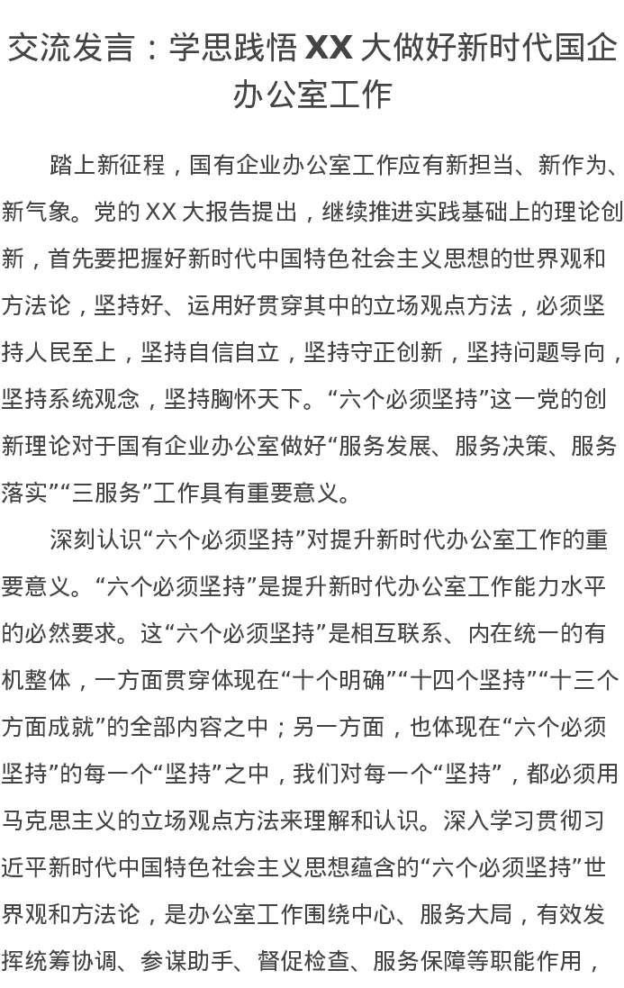 交流发言:学思践悟XX大做好新时代国企办公室工作