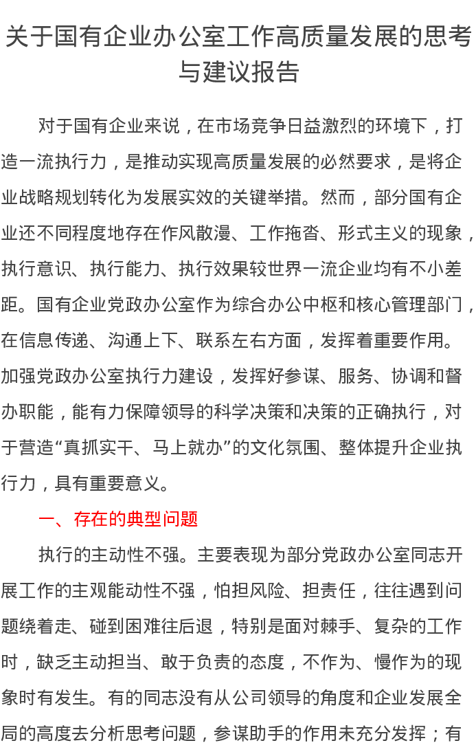 关于国有企业办公室工作高质量发展的思考与建议报告