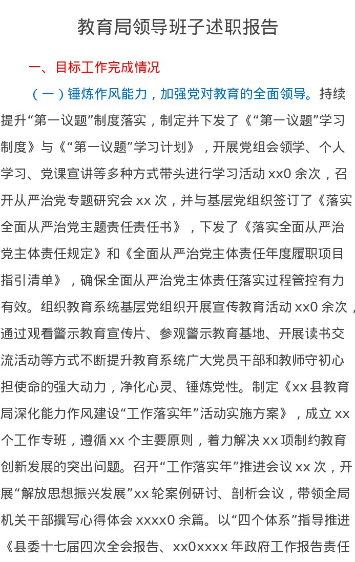 教育局领导班子述职报告