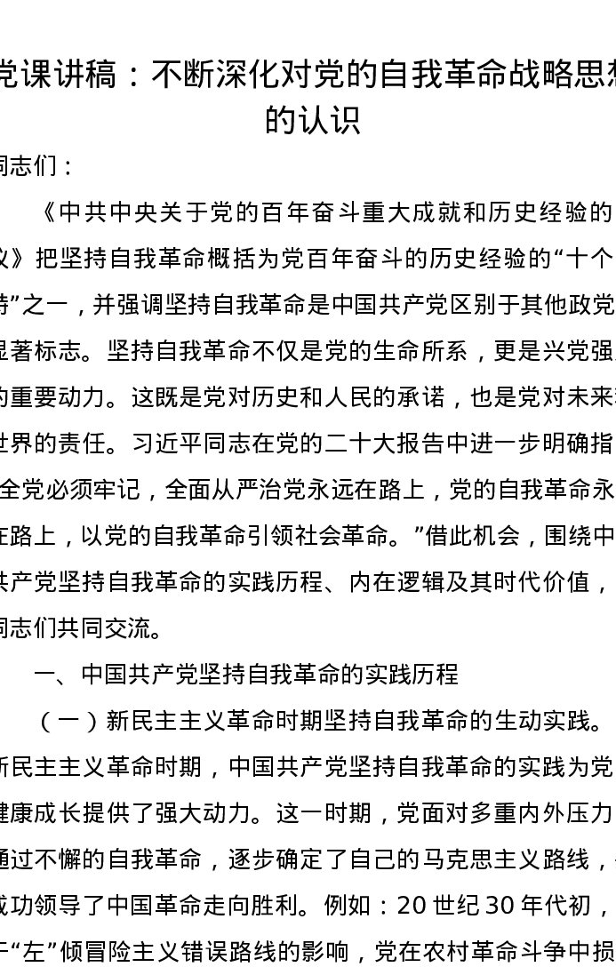 党课讲稿:不断深化对党的自我革命战略思想的认识