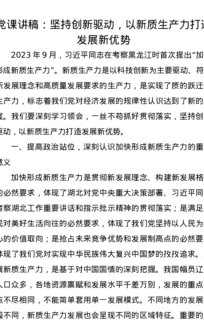 党课讲稿:坚持创新驱动,以新质生产力打造发展新优势