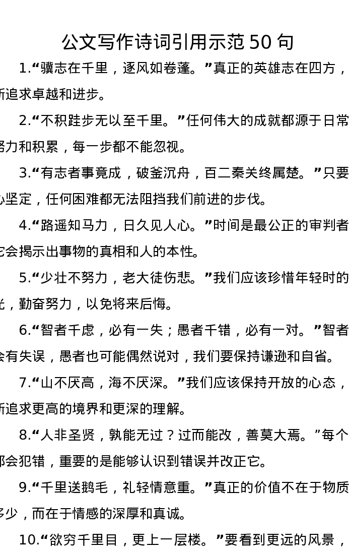 公文写作诗词引用示范50句