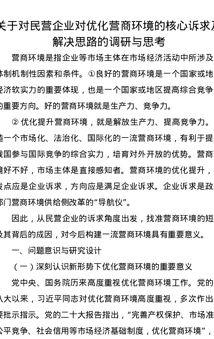 关于对民营企业对优化营商环境的核心诉求及解决思路的调研与思考