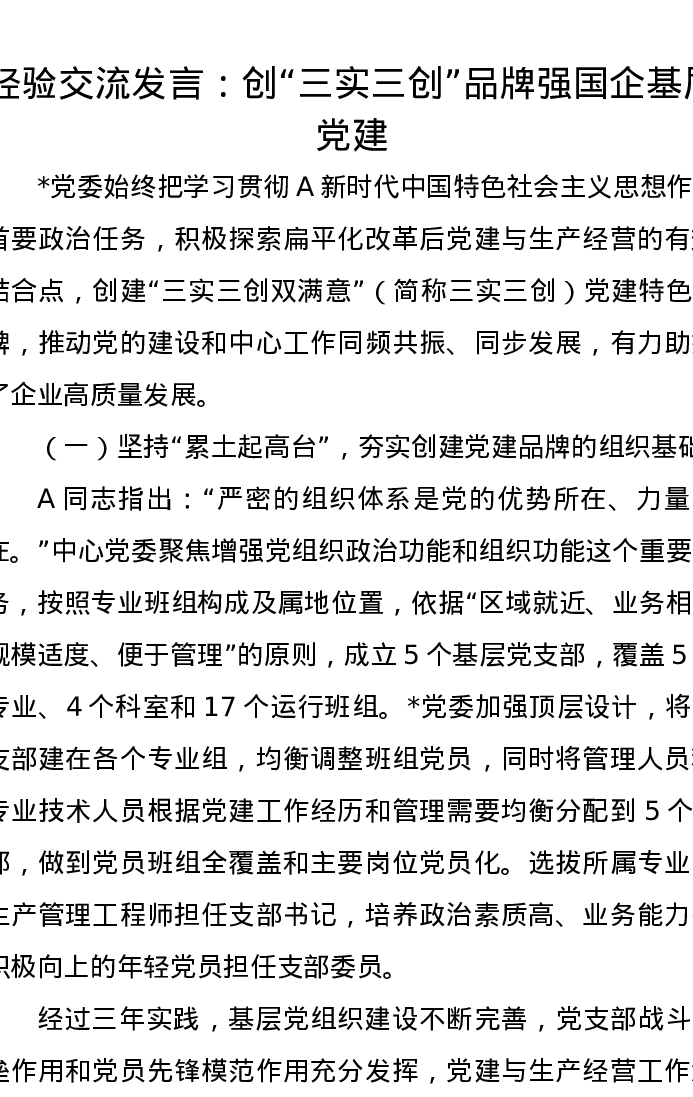 经验交流发言:创“三实三创”品牌强国企基层党建