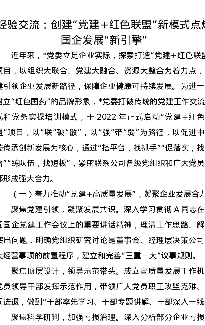 经验交流:创建“党建+红色联盟”新模式点燃国企发展“新引擎”