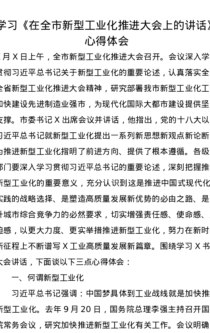 学习《在全市新型工业化推进大会上的讲话》心得体会