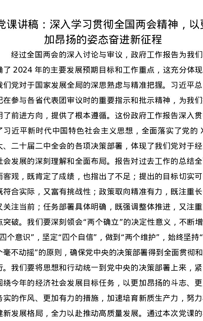 党课讲稿:深入学习贯彻全国两会精神,以更加昂扬的姿态奋进新征程