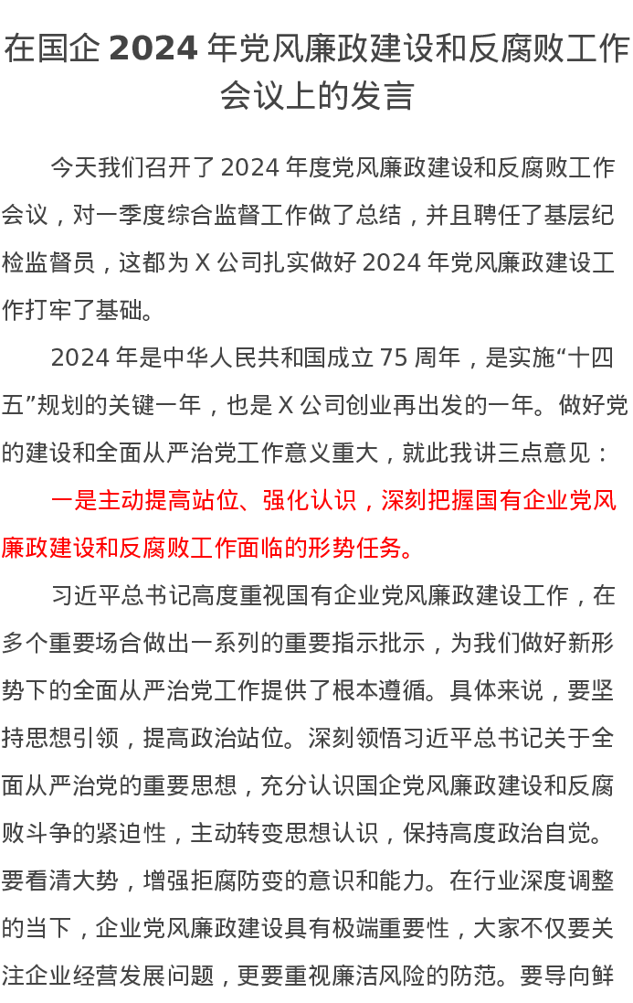 在国企2024年党风廉政建设和反腐败工作会议上的发言