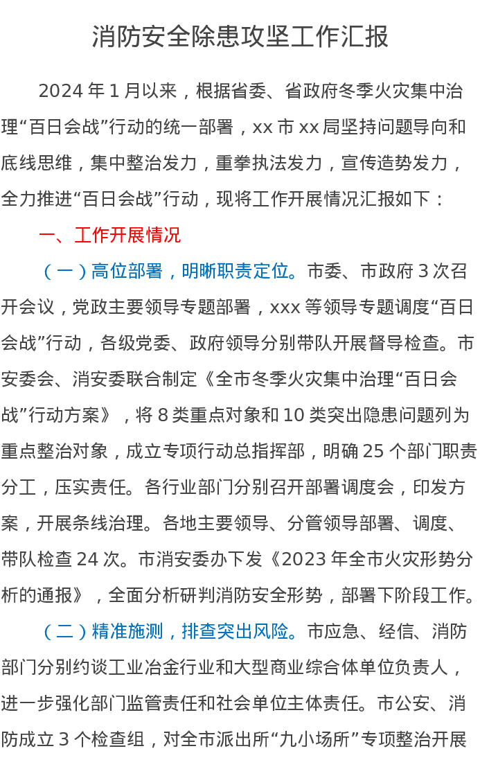 消防安全除患攻坚工作汇报