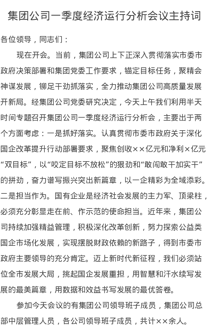 集团公司一季度经济运行分析会议主持词
