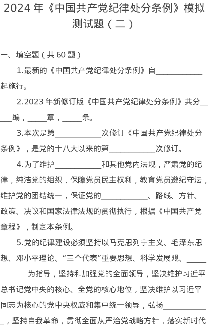 2024年《中国共产党纪律处分条例》模拟测试题(二)