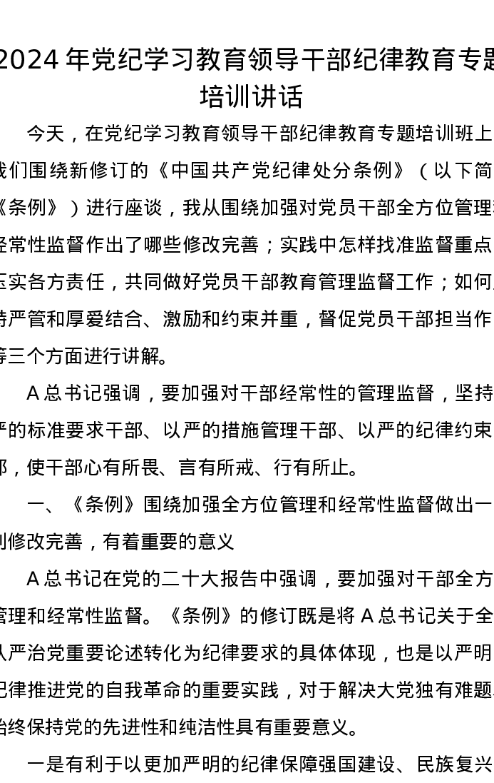 党纪学习教育纪律教育(《纪律处分条例》)专题培训讲话