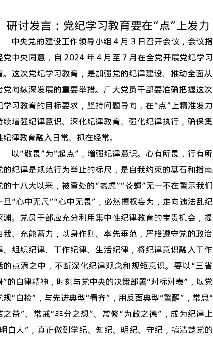 研讨发言:党纪学习教育要在“点”上发力