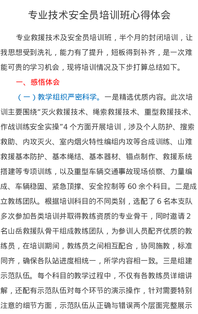 专业技术安全员培训班心得体会