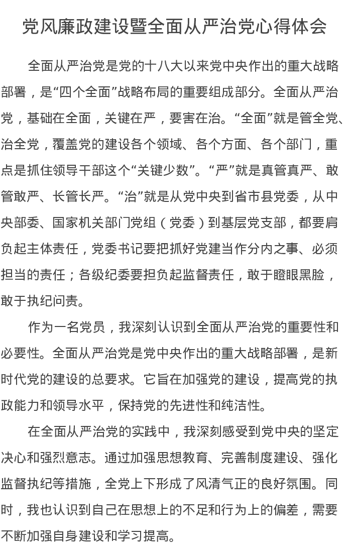 党风廉政建设暨全面从严治党心得体会
