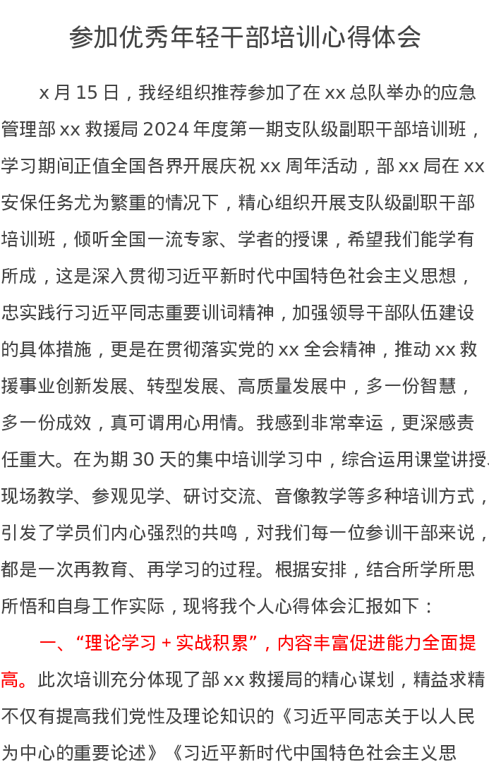 参加优秀年轻干部培训心得体会