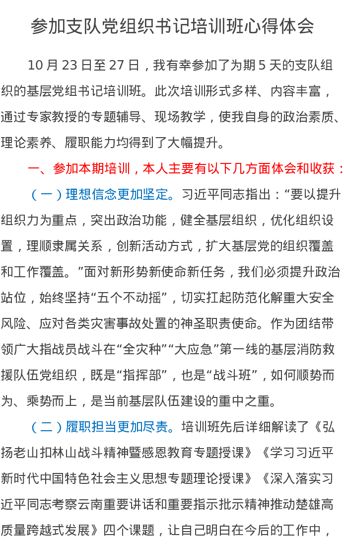参加支队党组织书记培训班心得体会