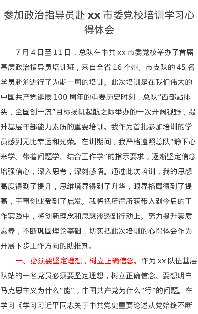 参加政治指导员赴xx市委党校培训学习心得体会