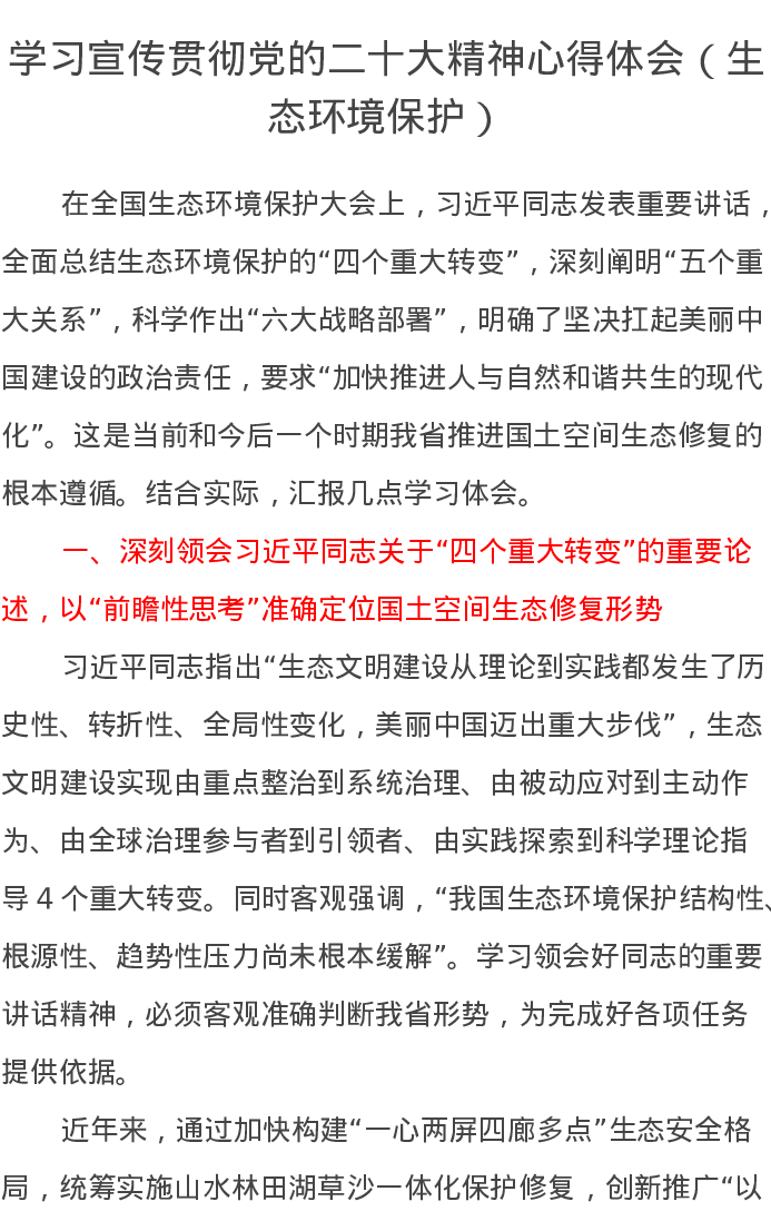 学习宣传贯彻党的二十大精神心得体会(生态环境保护)