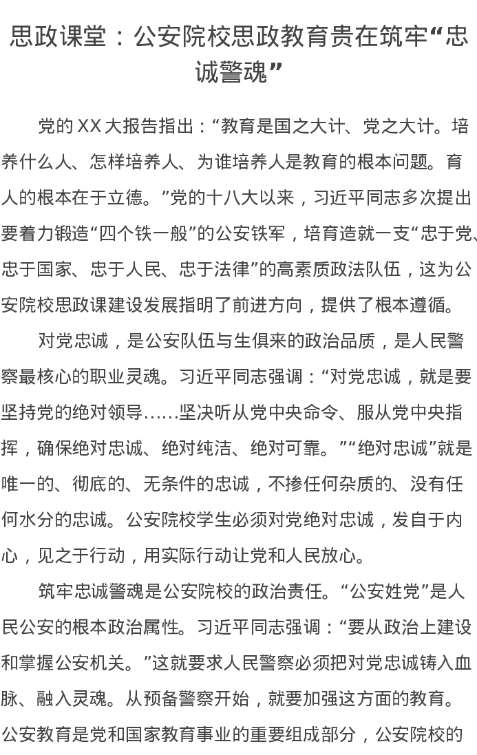 思政课堂:公安院校思政教育贵在筑牢“忠诚警魂”