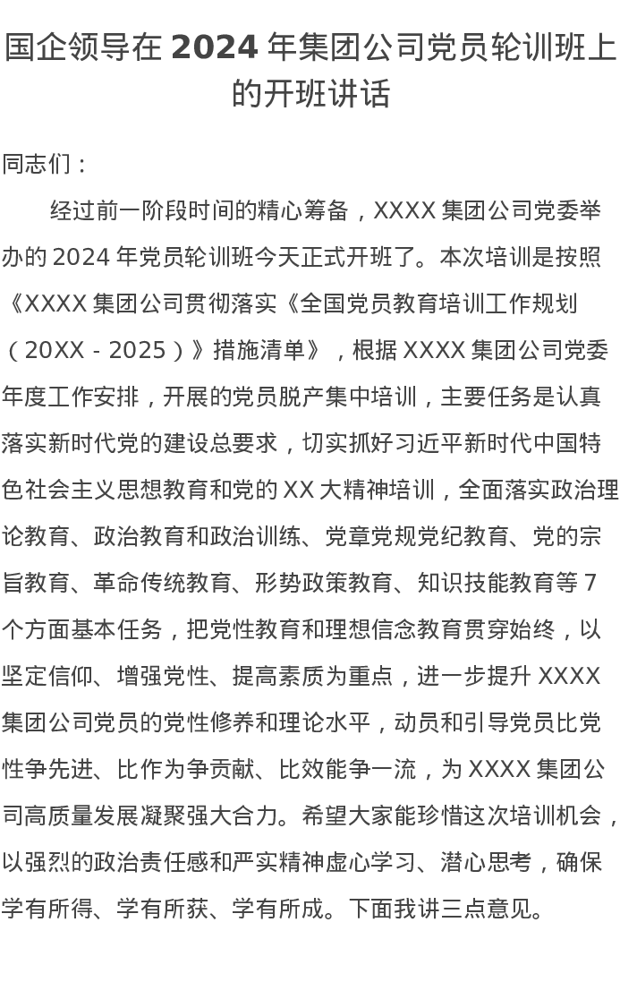 国企领导在2024年集团公司党员轮训班上的开班讲话