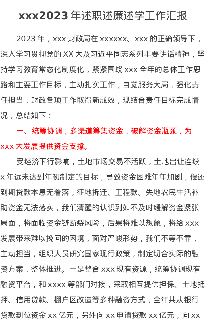 xxx2023年述职述廉述学工作汇报
