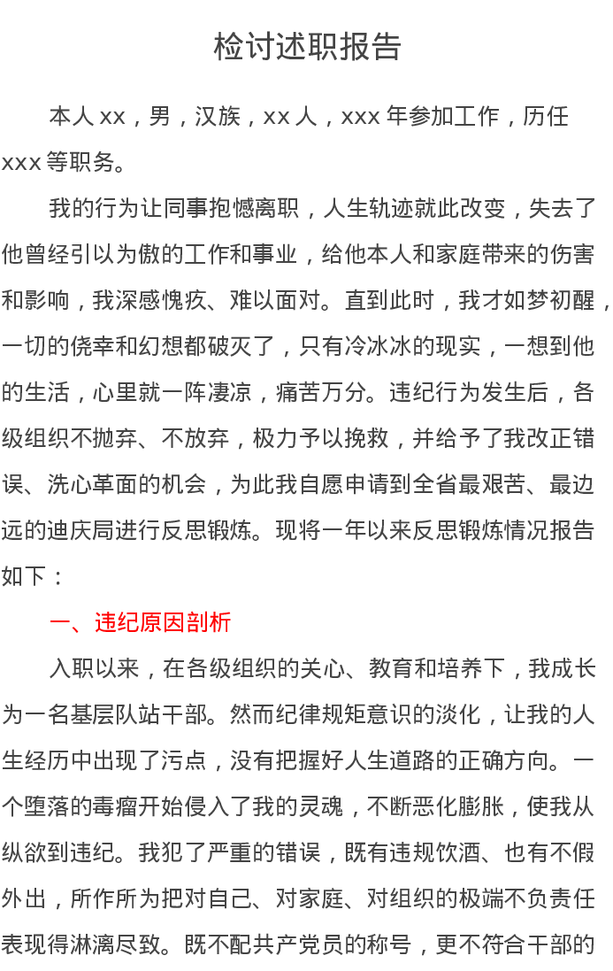 检讨述职报告