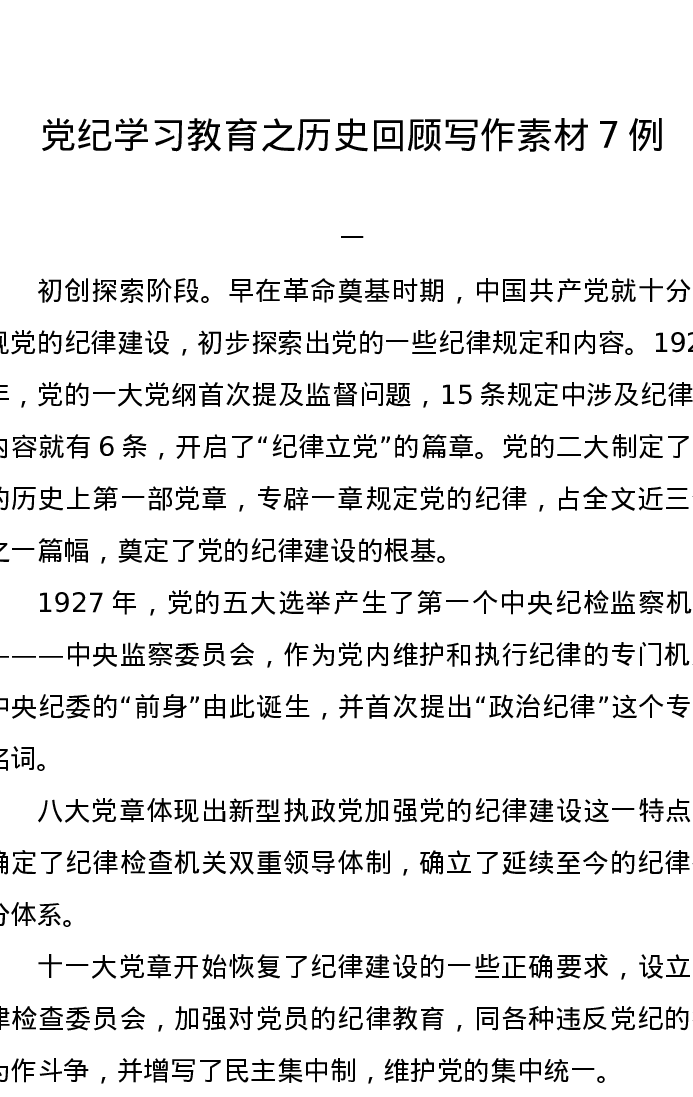 党纪学习教育∣00写作指引:02党纪学习教育之历史回顾写作素材7例