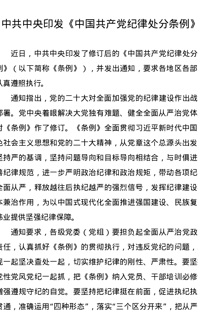 党纪学习教育∣01上级精神:01中共中央印发《中国共产党纪律处分条例》的通知
