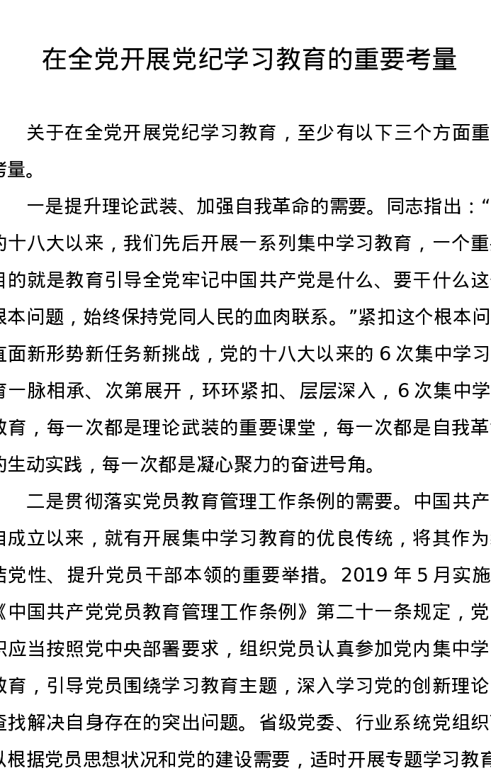 党纪学习教育∣01上级精神:07在全党开展党纪学习教育的重要考量
