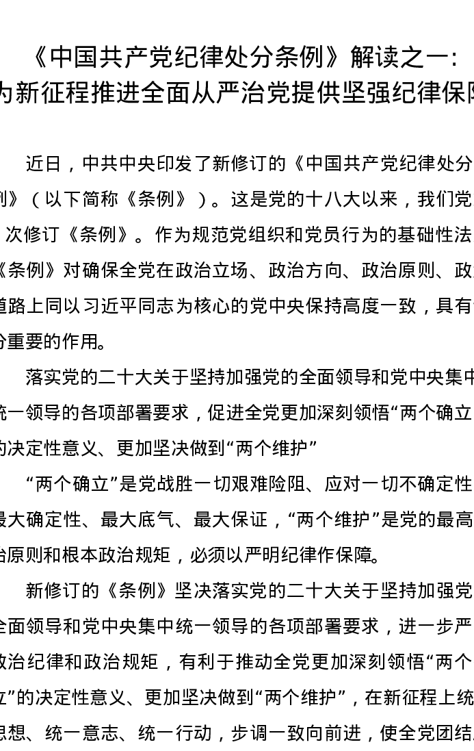 党纪学习教育∣02学《条例》:04《中国共产党纪律处分条例》解读之一:为新征程推进全面从严治党提供坚强纪律保障