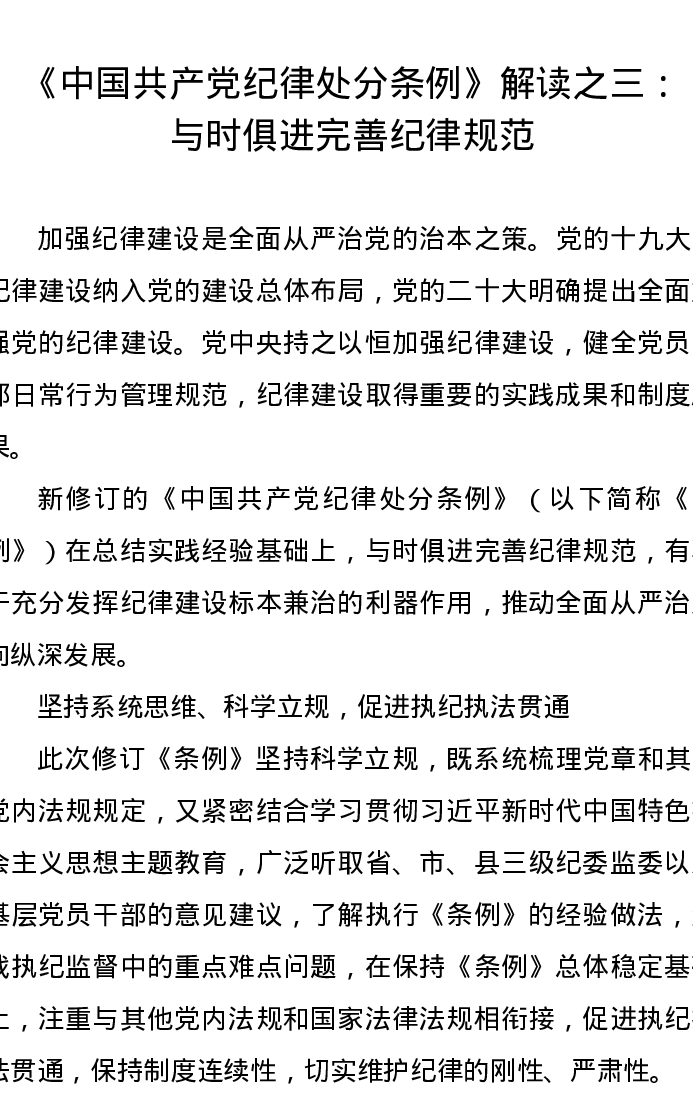 党纪学习教育∣02学《条例》:06《中国共产党纪律处分条例》解读之三:与时俱进完善纪律规范