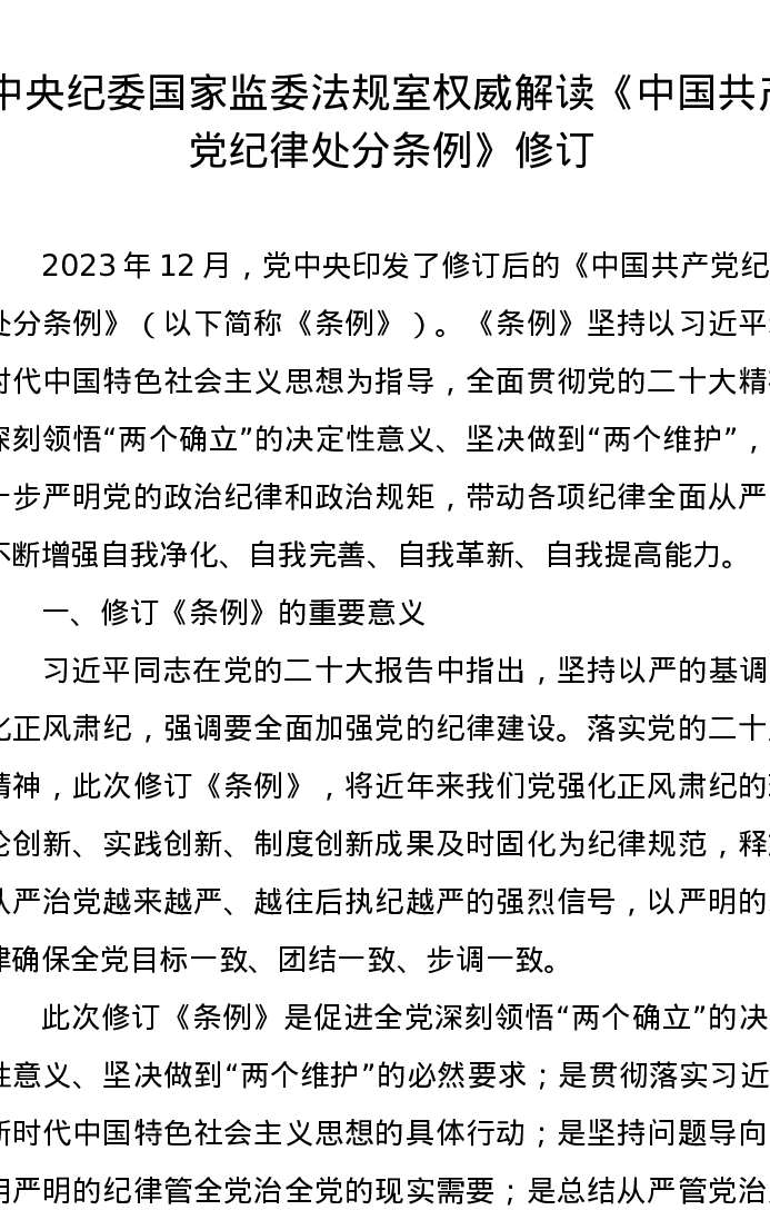 党纪学习教育∣02学《条例》:13中央纪委国家监委法规室权威解读《中国共产党纪律处分条例》修订