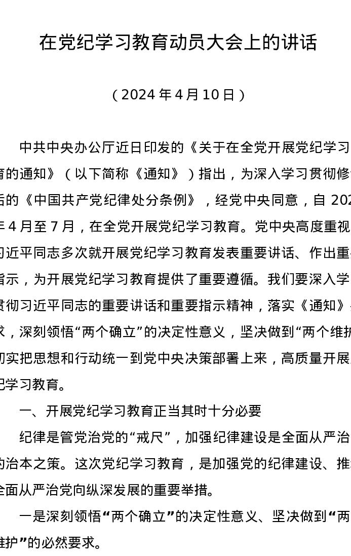 党纪学习教育∣03领导讲话:在党纪学习教育动员大会上的讲话(全文)