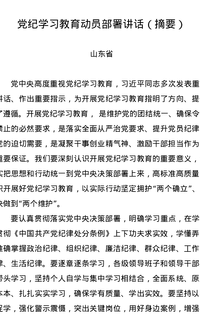 党纪学习教育∣04党委会议讲话:山东省委常委会贯彻落实意见