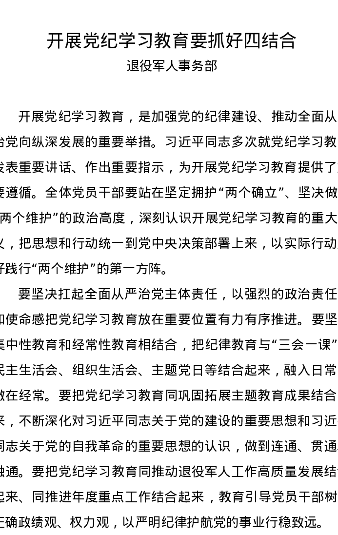 党纪学习教育∣04党委会议讲话:退役军人事务部党组贯彻落实意见