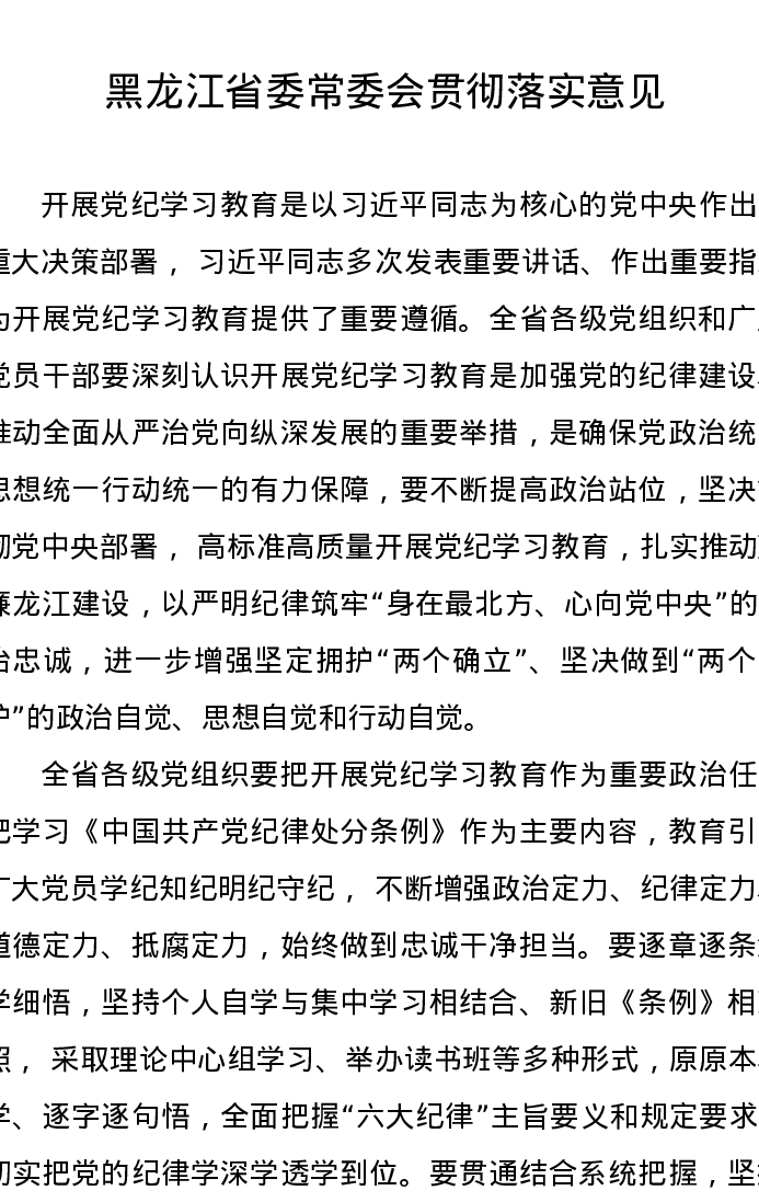 党纪学习教育∣04党委会议讲话:黑龙江省委常委会贯彻落实意见