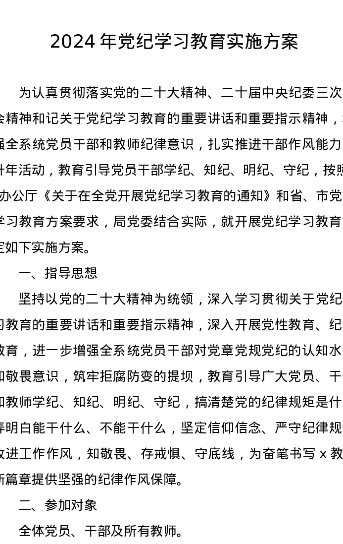 党纪学习教育∣05方案计划:2024年X局党纪学习教育实施方案
