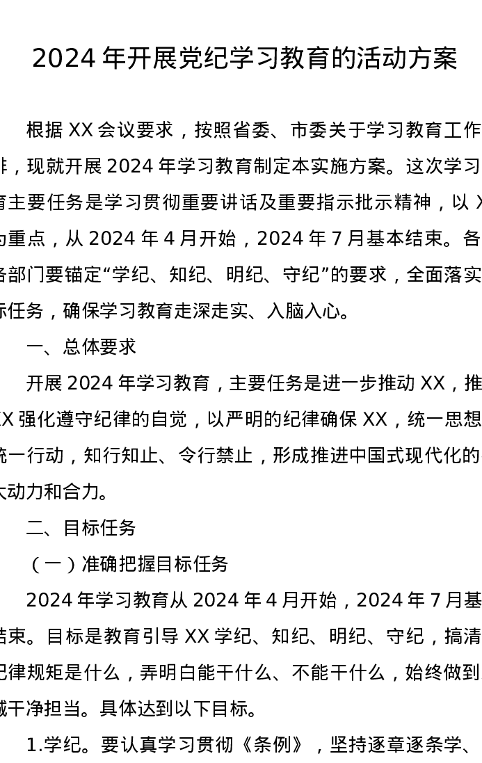 党纪学习教育∣05方案计划:2024年开展党纪学习教育的活动方案