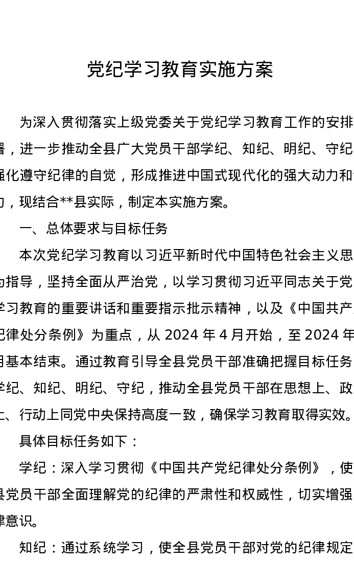党纪学习教育∣05方案计划:X县党纪学习教育实施方案