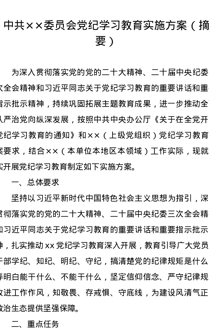 党纪学习教育∣05方案计划:中共××委员会党纪学习教育实施方案(摘要)