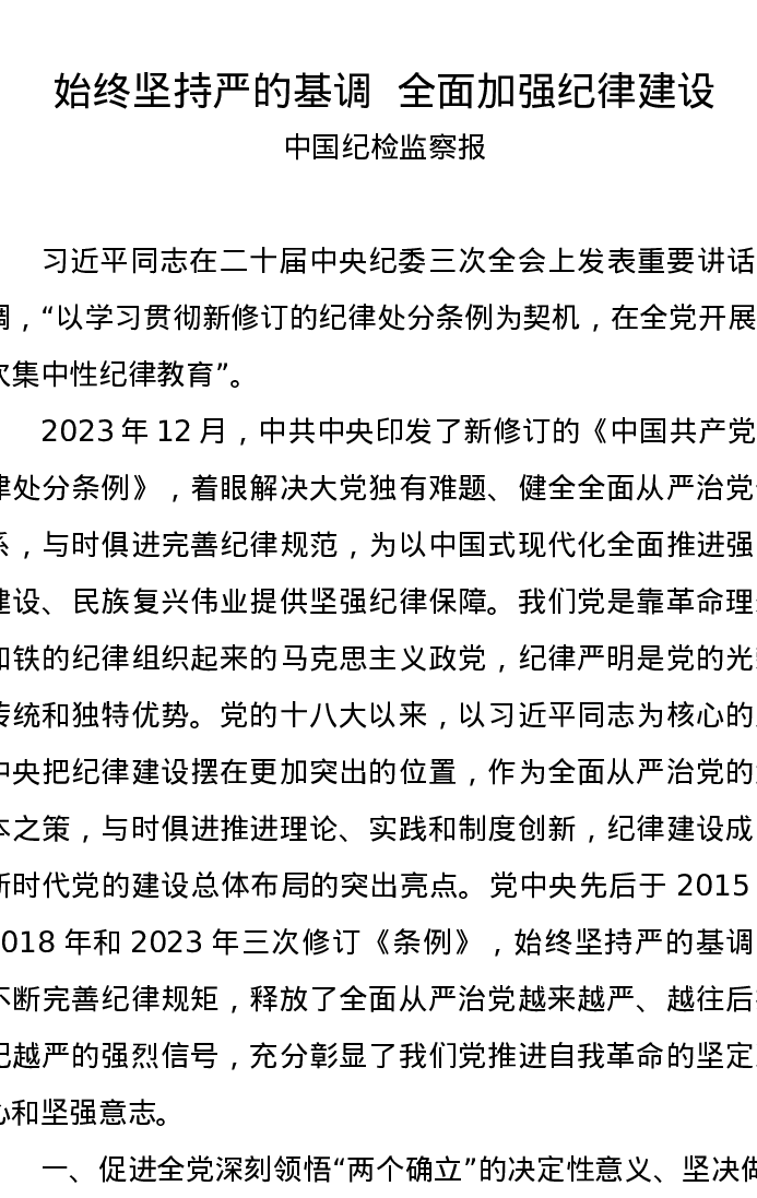 党纪学习教育∣06评论文章:始终坚持严的基调 全面加强纪律建设